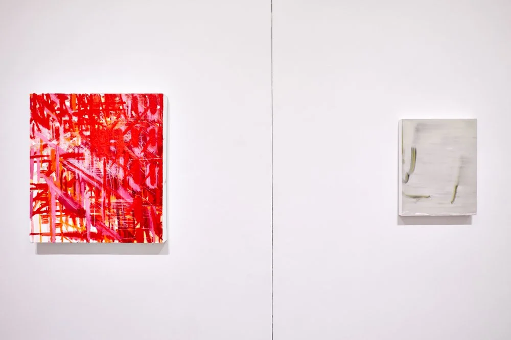 The Thin Film of Living, Private Public Gallery, Hudson, NY December 9, 2023 - January 13, 2024, l: Kylie Heidenheimer, r: Deborah Dancy, photo by Joshua Simpson