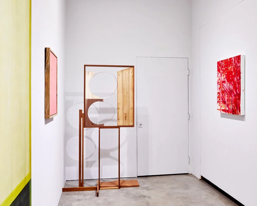 The Thin Film of Living, Private Public Gallery, Hudson, NY, December 9, 2023 - January 13, 2024, l to r: Kylie Heidenheimer BATH, Karlos Carcamo, Russell Steinert, photo by Joshua Simpson