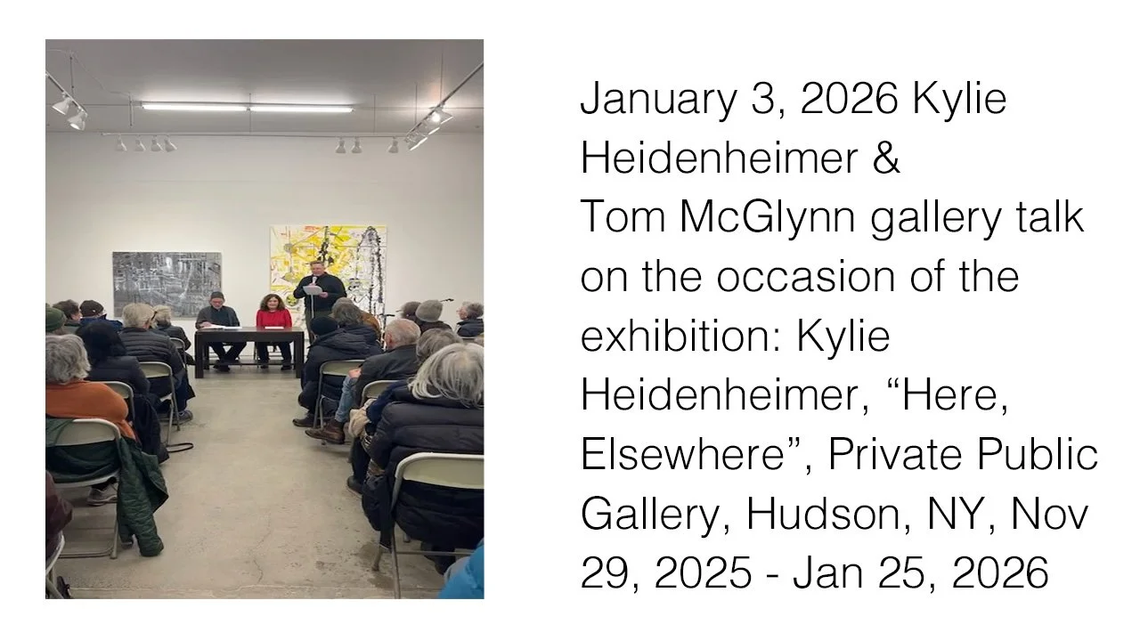 Video of January 3, 2026 Kylie Heidenheimer & Tom McGlynn Private Public Gallery talk now available Jan 25 Written By Kylie Heidenheimer Kylie Heidenheimer https://www.kylieheidenheimer.com