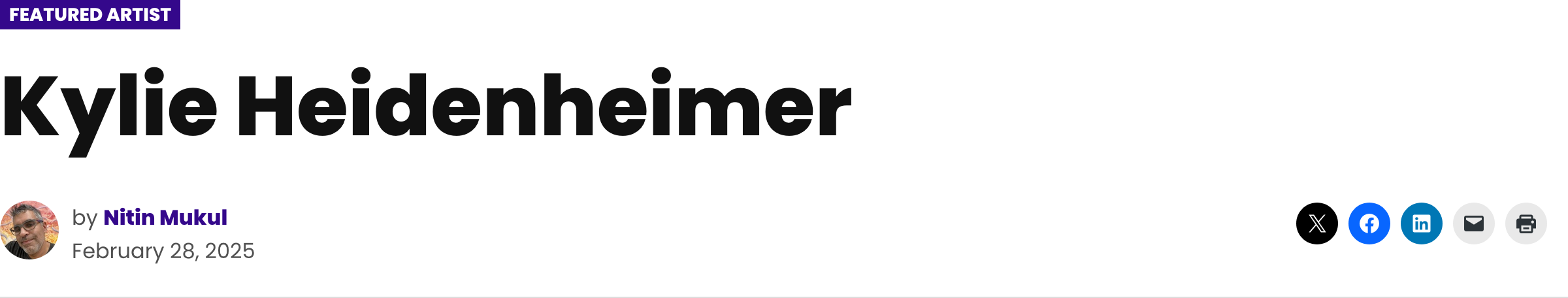 This week we welcome Kylie Heidenheimer, a visual artist known for her abstract paintings. Heidenheimer’s work has been the subject of solo exhibitions at Galerie Gris in Hudson, NY, 532 Gallery Thomas Jaeckel, in NYC, and Ohio Northern University in Ada, OH, among others.